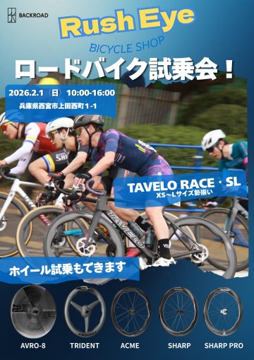 2026年2月1日(日) Rush Eye 店頭にてTAVELO のロードバイクの試乗会を開催します🚴 お客様の所有バイクへカーボンホイールを付け替えての試乗もできます🌟😊
