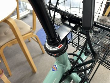 ハンドルロック装置の「くるピタ」も標準装備されており、重い荷物をバスケットに入れても「くるピタ」でロックしておけば不意のハンドル回転やそれに伴う自転車の転倒も防いでくれます😊
