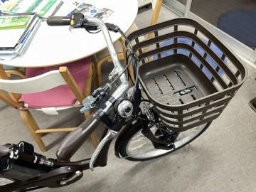 前輪がモーターで引っ張ってくれるので容積の大きなバスケットに沢山荷物を載せた状態でもハンドルがふらつきにくくなるのも特徴の一つです☝️