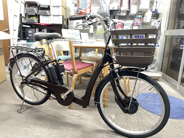 前輪がモーターで引っ張ってくれるので容積の大きなバスケットに沢山荷物を載せた状態でもハンドルがふらつきにくくなるのも特徴の一つです☝️